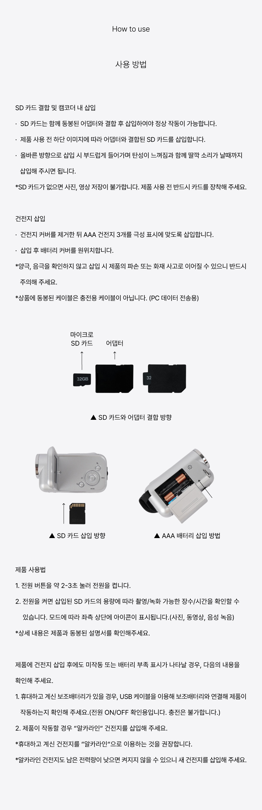本產品使用 AAA 電池供電,附贈的 USB 線僅用於將檔案傳輸至電腦,無法為相機充電,請勿誤會。