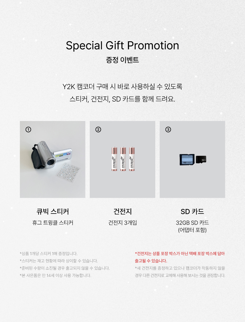 韓國爆紅 Huug Y2K 復古攝錄機!經典銀色機身,還原千禧年代手持攝錄機握感,拍攝畫面自帶低畫質復古濾鏡感。套裝內附 32GB SD 卡、電池及 DIY 貼紙,開箱即用,輕鬆拍出 NewJeans 同款氛圍。